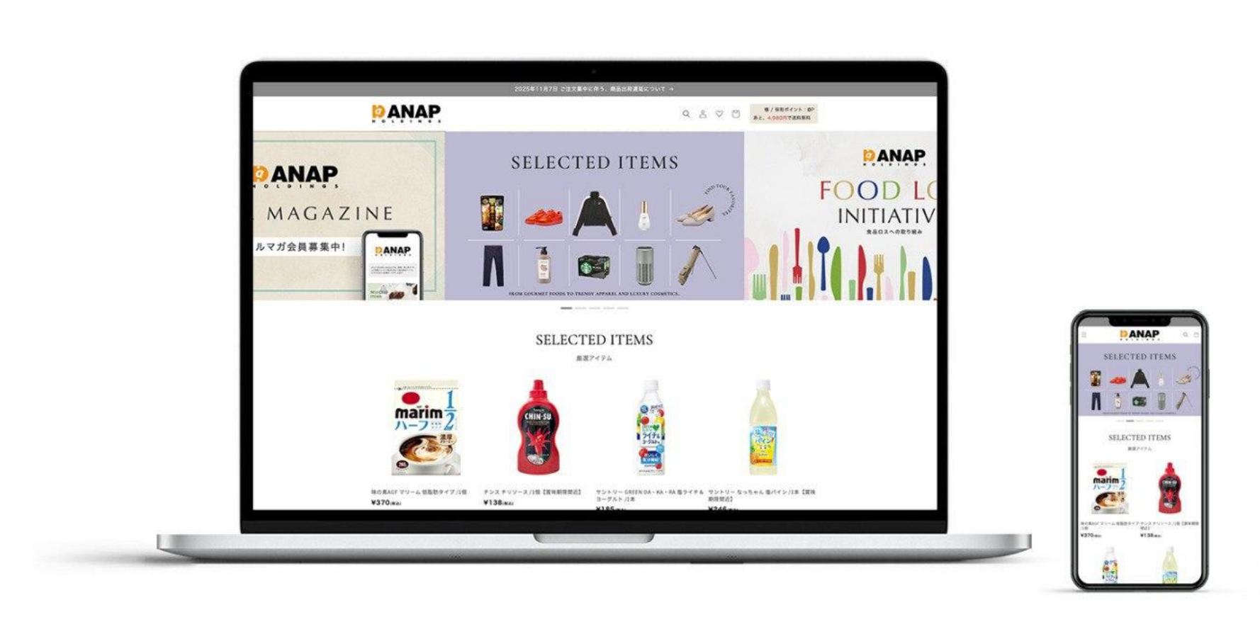 ※3 対象商品:当社グループが販売しているANAPブランド商品はもちろん、有名メーカーを含む、化粧品、電化製品、アパレル、一般食品、飲料、ジュエリー、バッグ、家具、 インターネットサービス利用権、書籍、海外コスメ、タレントグッズや株主優待サイトオリジナル商品等
